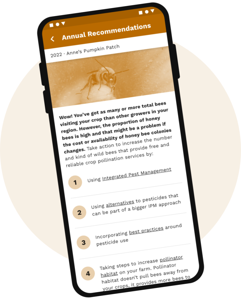 Utilizes a straightforward scouting methodology and helpful pollinator identification diagrams, developed in collaboration with scientists and growers.
